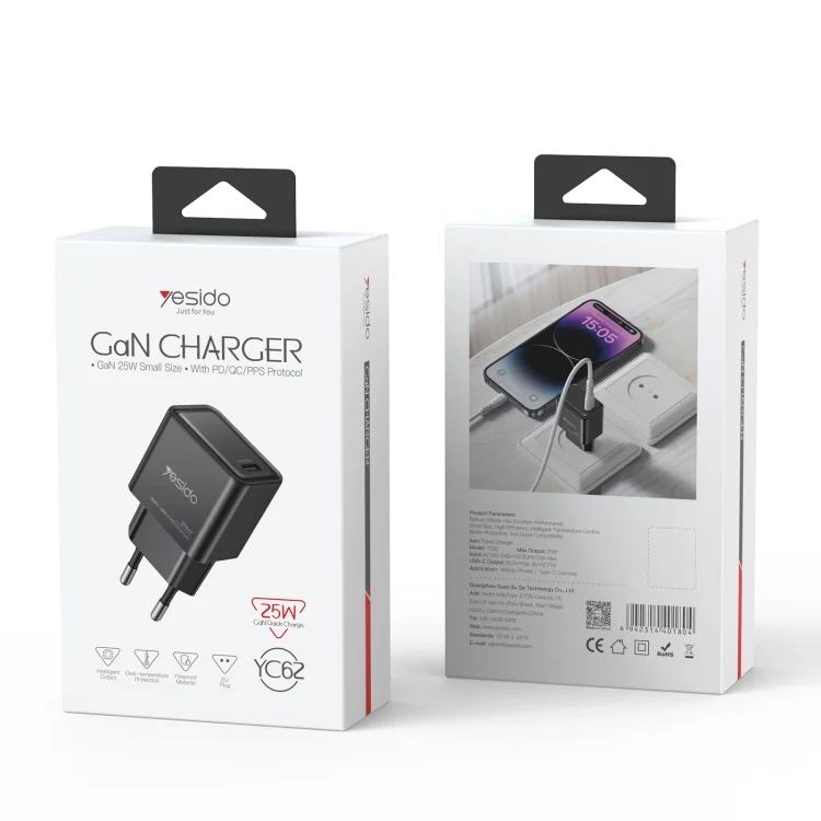 Yesido YC62 PD 25W USB-C/Type-C Interface GaN Fast Charging Charger, YC62