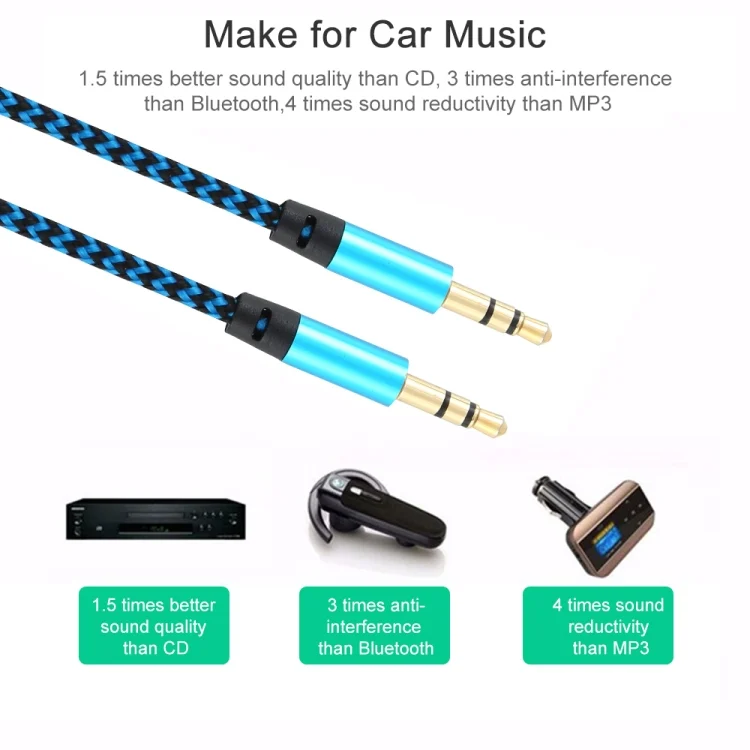 3 PCS K10 3.5mm Male to Male Nylon Braided Audio Cable, Length: 1m