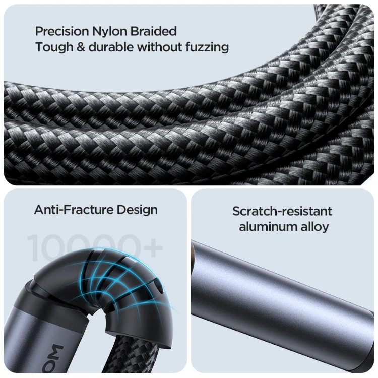6. 48-strand precision nylon braiding, enhanced durability, 10000+ bending life