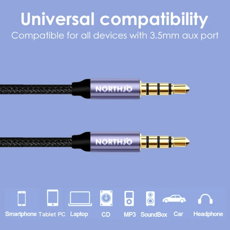 NORTHJO MTM04 4 Pole 3.5mm Male to Male Stereo Audio Aux Cable, 1m, 2m, 3m