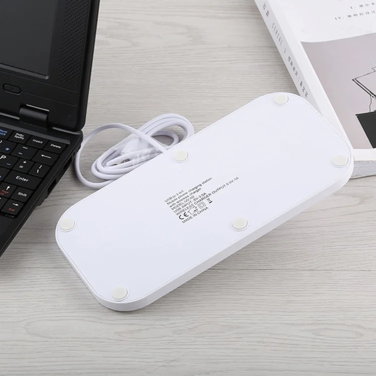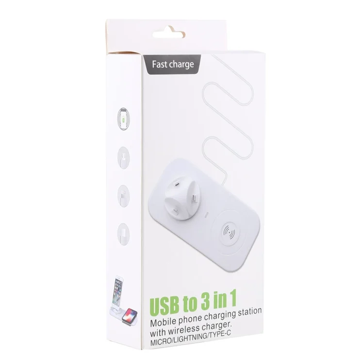 USB to 3 in 1 (8 Pin + Micro USB + USB-C / Type-C) Dock Charger Desktop Charging Data Sync Stand Station Holder with Qi Wireless Charger & USB Cable