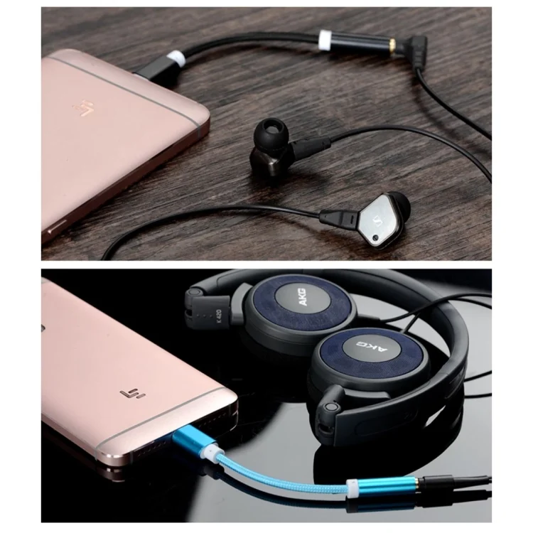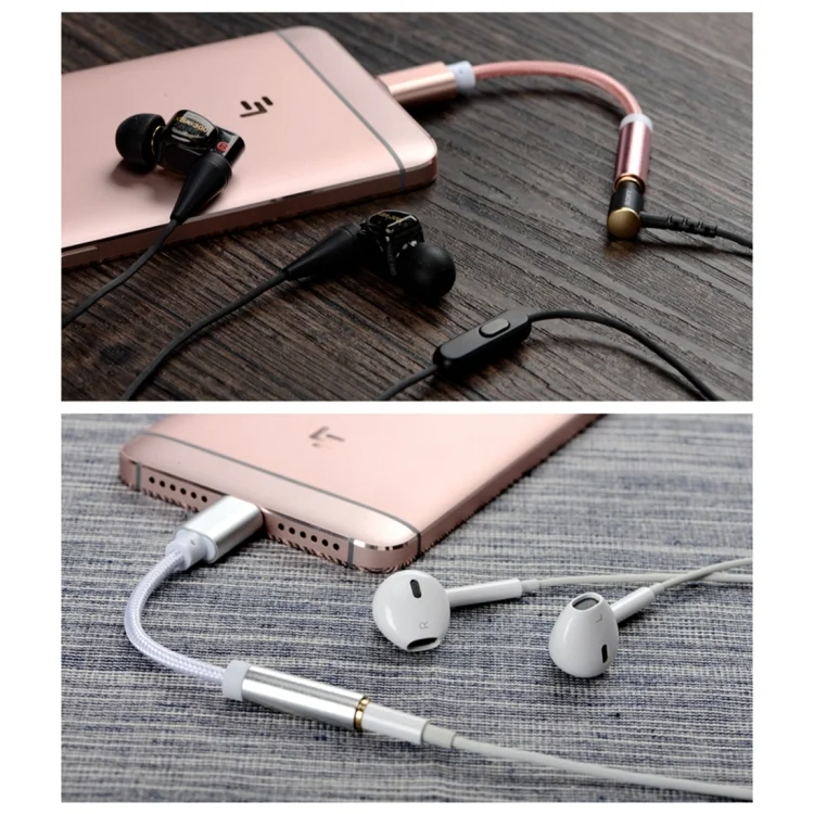 ENKAY Hat-Prince USB-C / Type-C to 3.5mm Nylon Woven Audio Adapter, Length: about 10cm, Black, Gold, Magenta