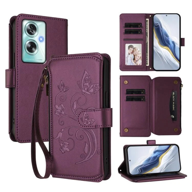 Butterfly Love Flower Multi-card Zipper Wallet Leather Phone Case, For OPPO A79 5G Global, For OPPO A5x 5G / 4G Global