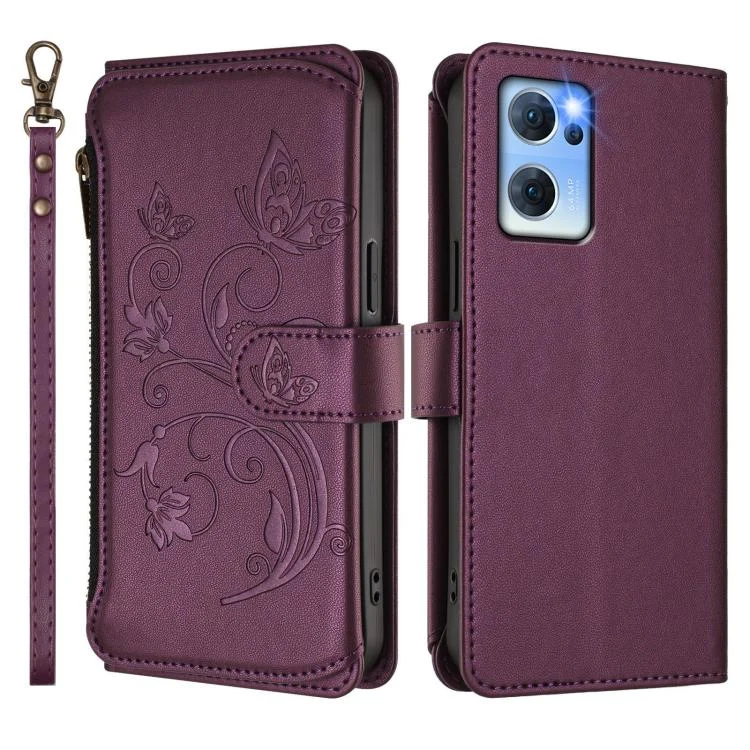 Butterfly Love Flower Multi-card Zipper Wallet Leather Phone Case, For OPPO Reno7 5G Global / Find X5 Lite
