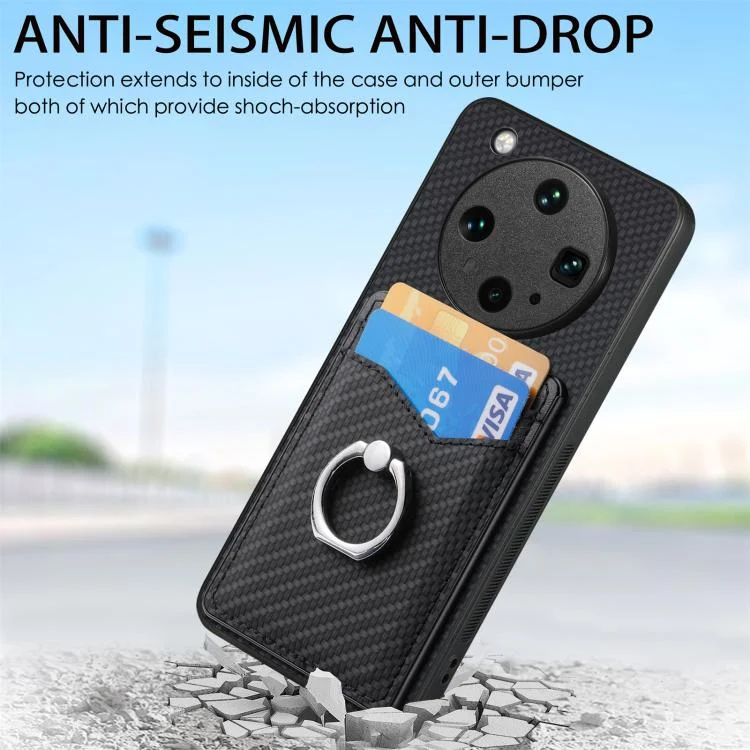 Carbon Fiber Card Wallet Ring Phone Case, For OPPO Find X8 Ultra
