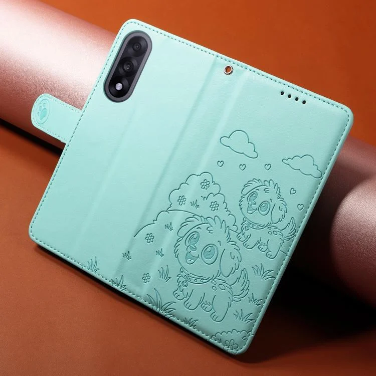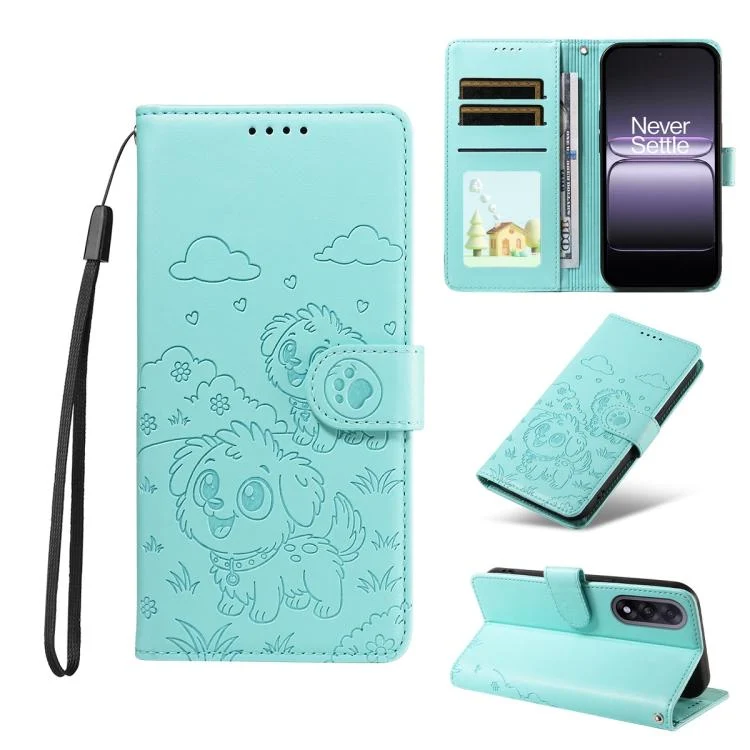 Embossed Heart Dog RFID Blocking Wallet Leather Phone Case, For OnePlus Ace 5 Ultra / Nord 5 5G, For OnePlus Ace 5 Racing / Nord CE5 5G, For OnePlus 13R / Ace 5 / 5 Pro