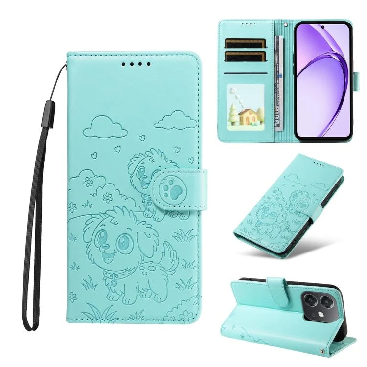 Embossed Heart Dog RFID Blocking Wallet Leather Phone Case, For OPPO A3X 5G India / A40 4G / A60 5G, For OPPO Reno14 Pro 5G Global, For OPPO A5 Pro 4G / 5G Global, For OPPO F29 5G Global