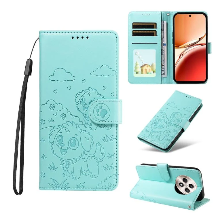 Embossed Heart Dog RFID Blocking Wallet Leather Phone Case, For OPPO Reno12 F 4G / 5G Global, For OPPO Reno12 Pro 5G Global, For OPPO Reno12 Global, For OPPO Reno11 F / F25 Pro