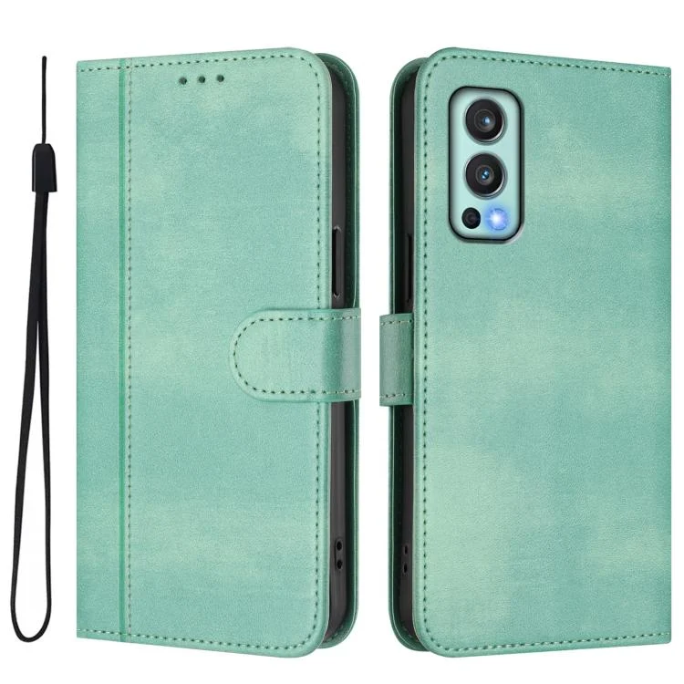 Line Splicing Buckle Retro Leather Phone Case, For OnePlus Nord 2 5G, For OnePlus 9 Pro