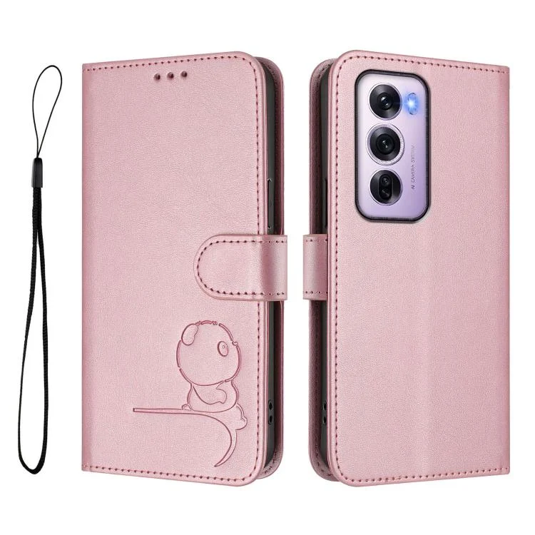 Litter Panda Embossing RFID Leather Phone Case with Lanyard, For OPPO Reno12 Pro 5G Global, For OPPO Reno12 5G Global, For OPPO A2 Pro 5G / F27 Pro / F27 Pro+