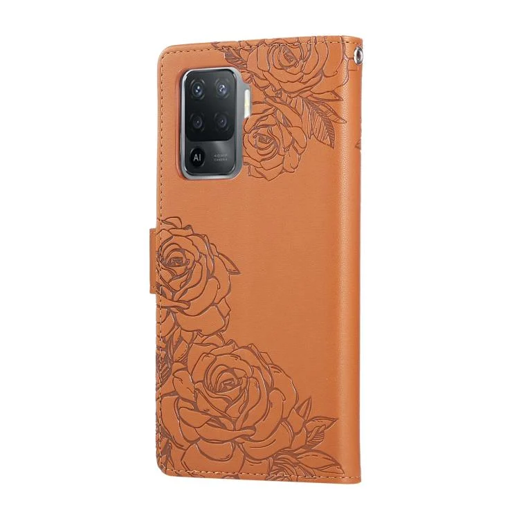 Rose Flower Embossed 3-Card Slots Leather Phone Case, For OPPO A94 4G / F19 Pro
