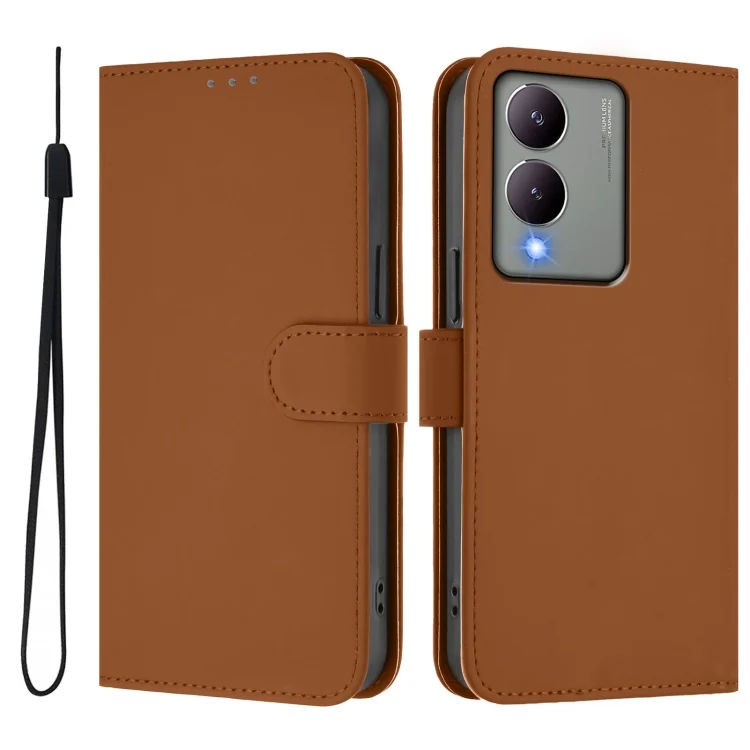 Skin Feel Solid Color Leather Phone Case with Lanyard, For vivo Y17S 4G Global