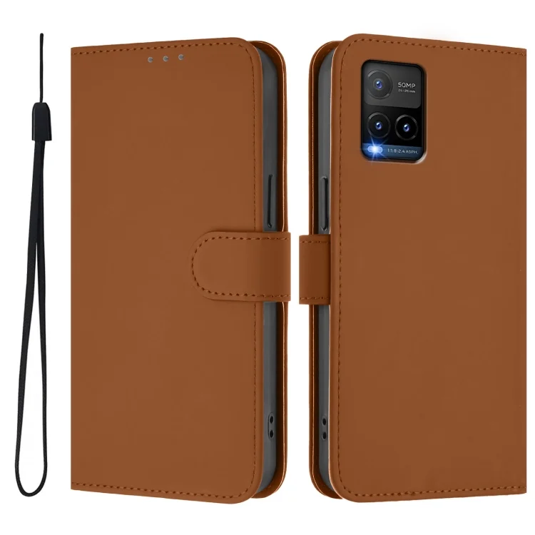 Skin Feel Solid Color Leather Phone Case with Lanyard, For vivo Y33S 4G Global / Y21 2021