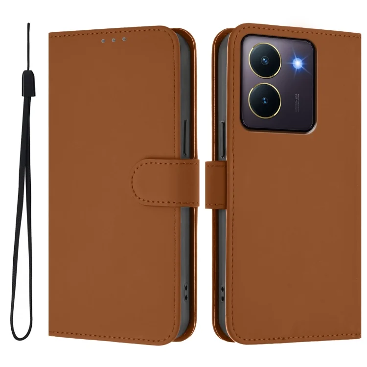 Skin Feel Solid Color Leather Phone Case with Lanyard, For vivo V30 Lite 5G Global