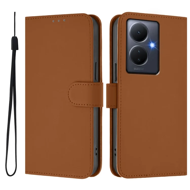 Skin Feel Solid Color Leather Phone Case with Lanyard, For vivo Y17S 4G Global