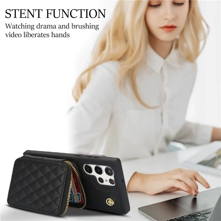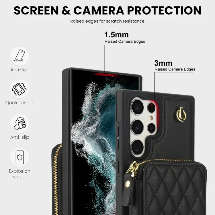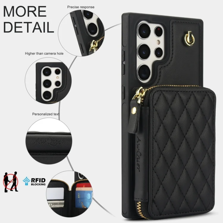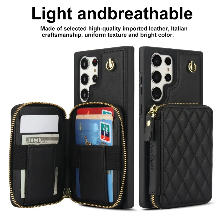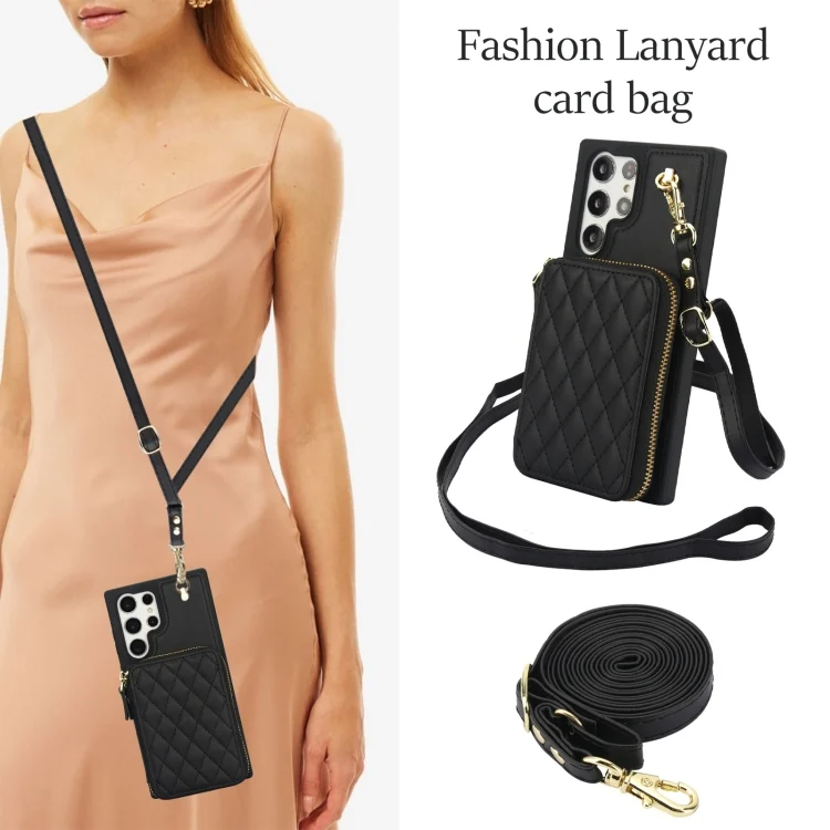 AwQuer Crossbody Zipper Wallet Rhombic Leather Back Phone Case, For Samsung Galaxy S23 Ultra 5G, For Samsung Galaxy S23+ 5G