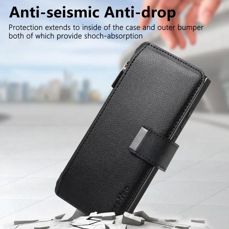 2. Zipper Wallet Function: The leather case is equipped with zipper wallet and card slots for placing cards and a small amount of cash.