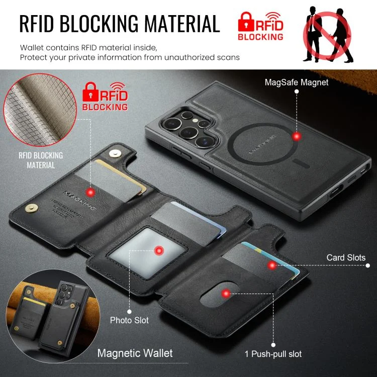 DG.MING MAGKING-K3 Series MagSafe RFID Card Bag Detachable Phone Case, For Samsung Galaxy S24 Ultra 5G, For Samsung Galaxy S24+ 5G, For Samsung Galaxy S24 5G, For Samsung Galaxy S23 Ultra 5G