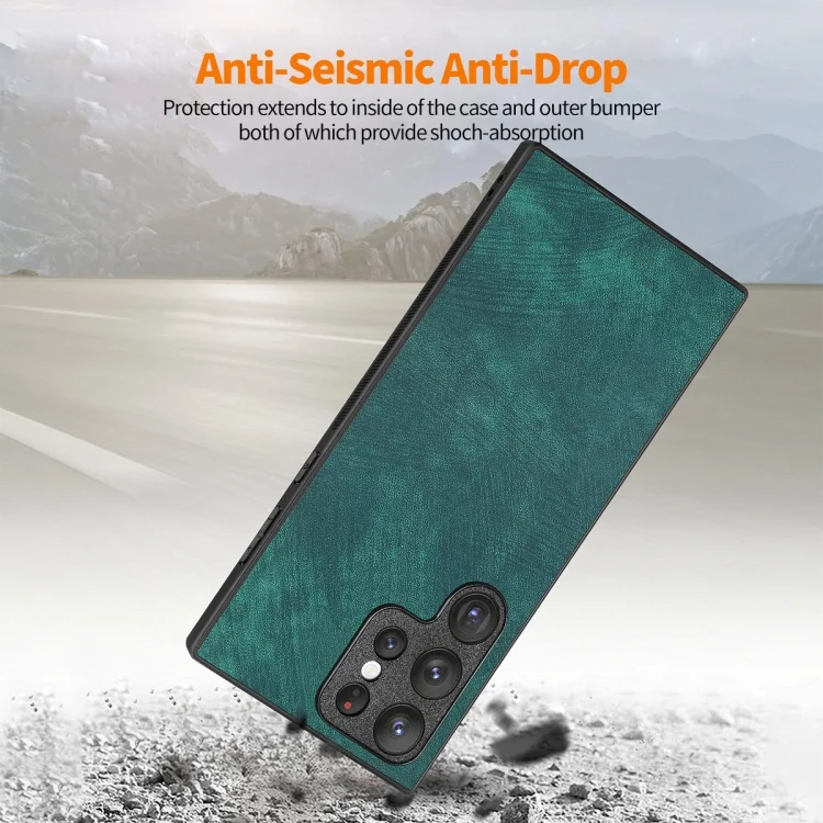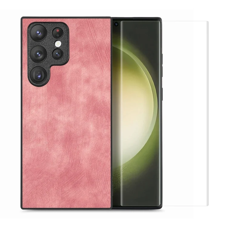 ENKAY Retro Leather Skin PC Phone Case with Soft PET Film, For Smausng Galaxy S23 Ultra 5G