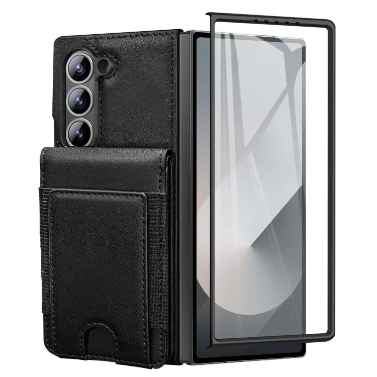 Folding Card Holder Tempered Film Integrated Leather Phone Case, For Samsung Galaxy Z Fold7, For Samsung Galaxy Z Fold6
