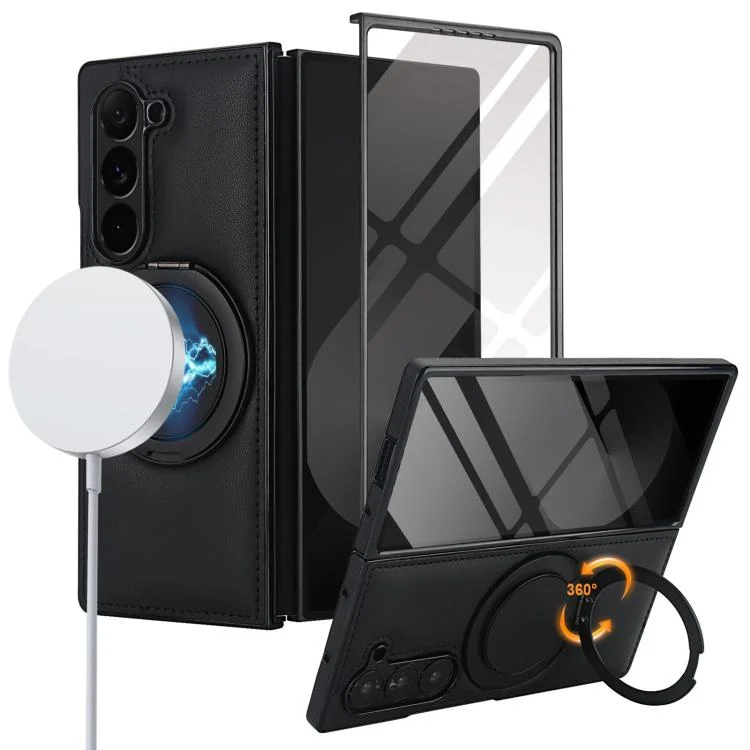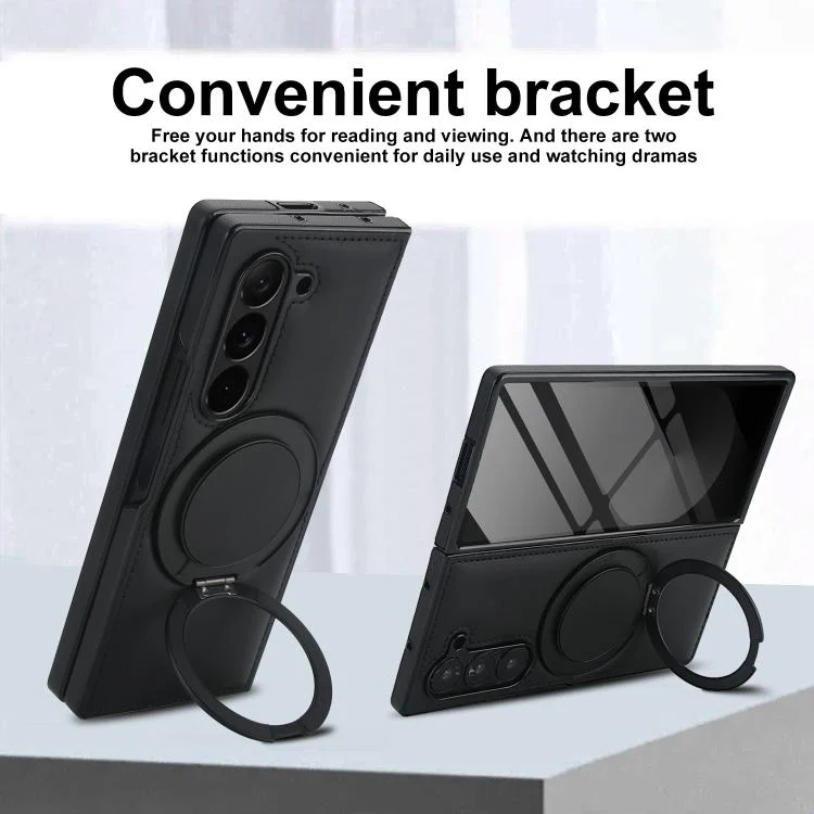 Folding Rotation Holder MagSafe Film Integrated Leather Phone Case, For Samsung Galaxy Z Fold5, For Samsung Galaxy Z Flip5