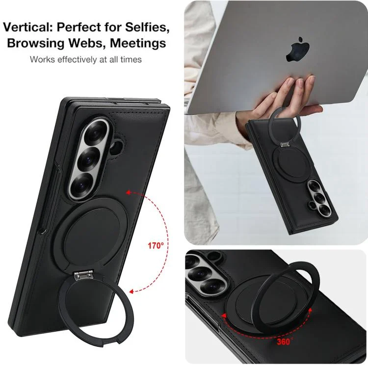 Folding Rotation Holder MagSafe Film Integrated Leather Phone Case, For Samsung Galaxy Z Fold7 5G, For Samsung Galaxy Z Flip7 5G