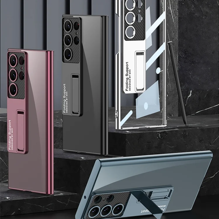 For Samsung Galaxy S23 Ultra 5G GKK Electroplating Full Coverage Protective Phone Case with Holder, For Samsung Galaxy S23 Ultra 5G