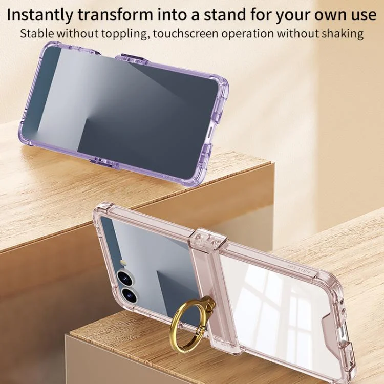 Gkk Airbag Hinge Silicone Phone Case with Ring Holder, For Samsung Galaxy Z Flip7 5G, For Samsung Galaxy Z Flip6 / Flip7 FE, For Samsung Galaxy Z Flip5