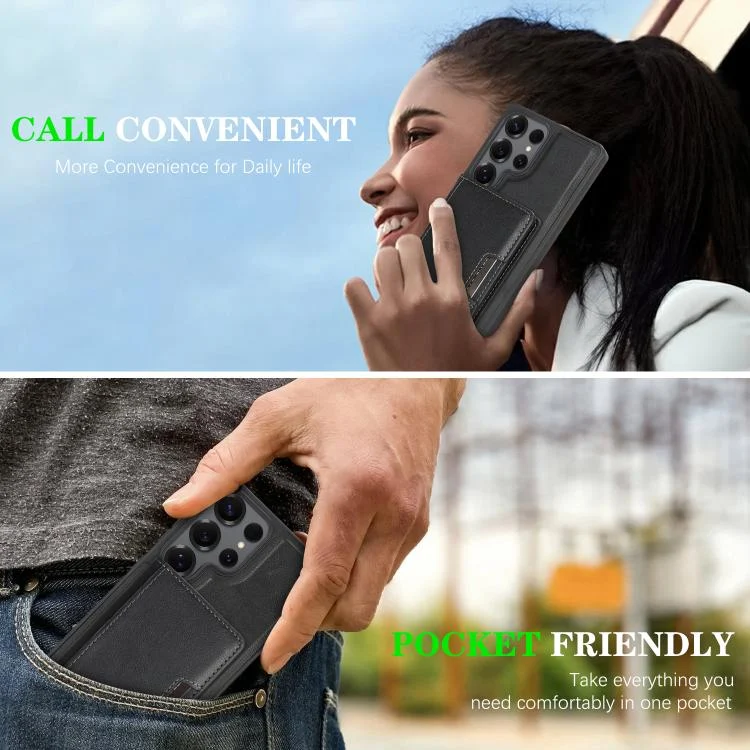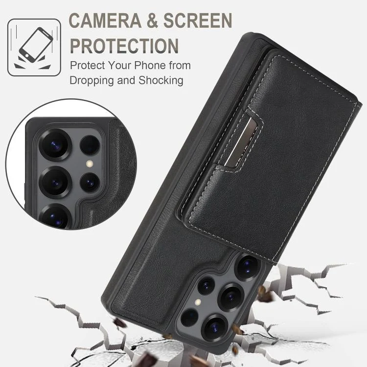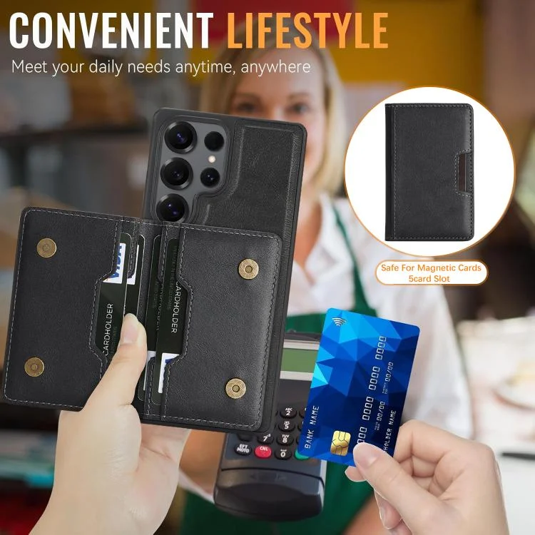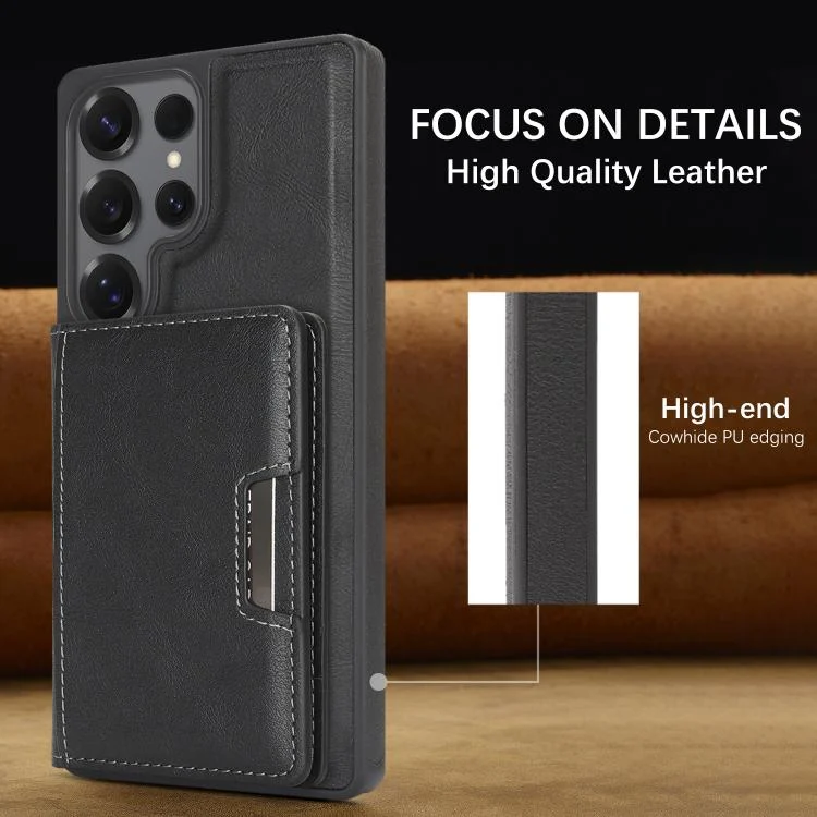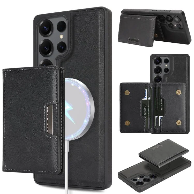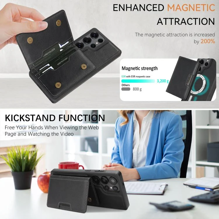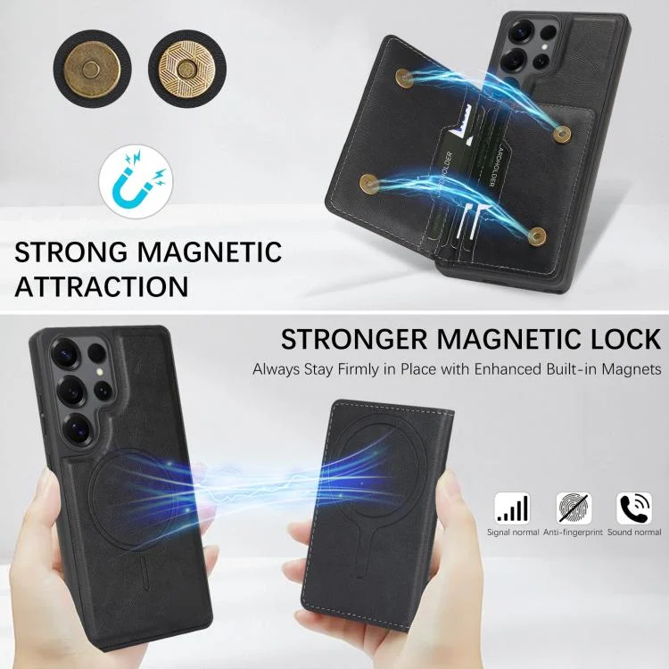 Kalebol Strong Magnetic MagSafe 2-Fold Ring Magnetic Card Case Leather Side Sticker Phone Case, For Samsung Galaxy S24 Ultra, For Samsung Galaxy Z Fold5