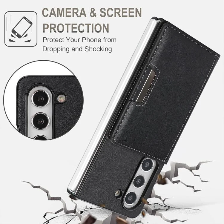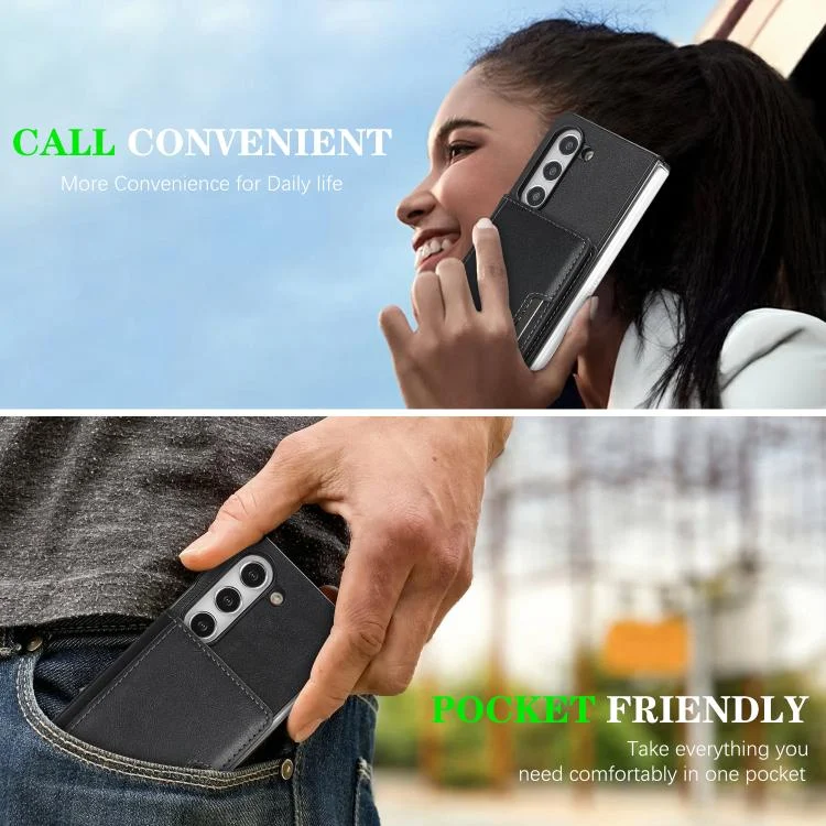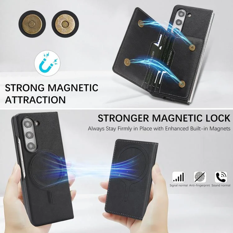 Kalebol Strong Magnetic MagSafe 2-Fold Ring Magnetic Card Case Leather Side Sticker Phone Case, For Samsung Galaxy S24 Ultra, For Samsung Galaxy Z Fold5