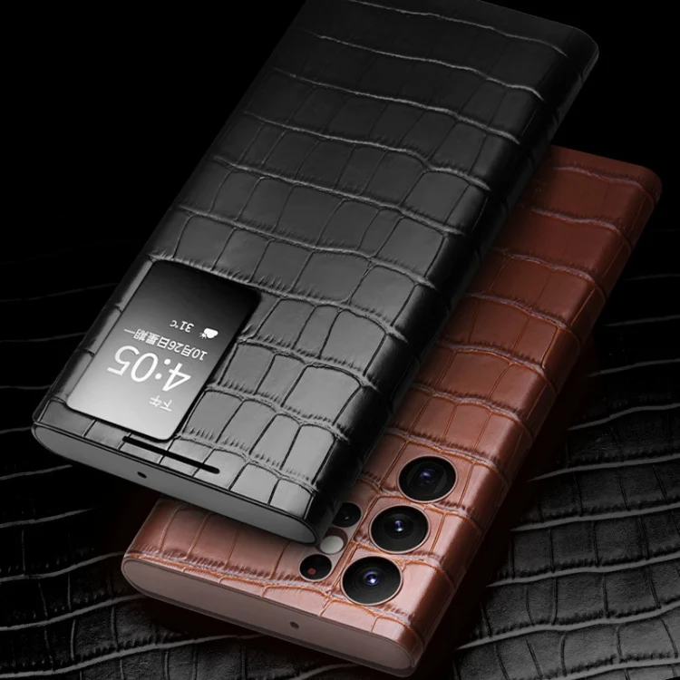 QIALINO Crocodile Pattern Genuine Leather Phone Case, For Samsung Galaxy Z Flip4, For Samsung Galaxy Z Fold3 5G/W22 5G, For Samsung Galaxy S22 5G, For Samsung Galaxy S22+ 5G…