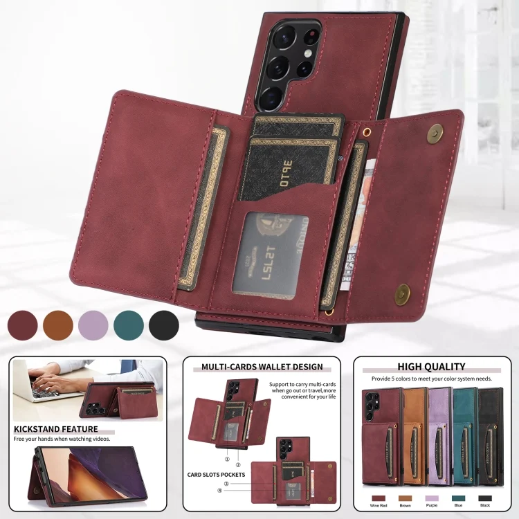 Three-fold Leather Phone Case with Card Slot & Wallet & Holder, For Samsung Galaxy S22 Ultra