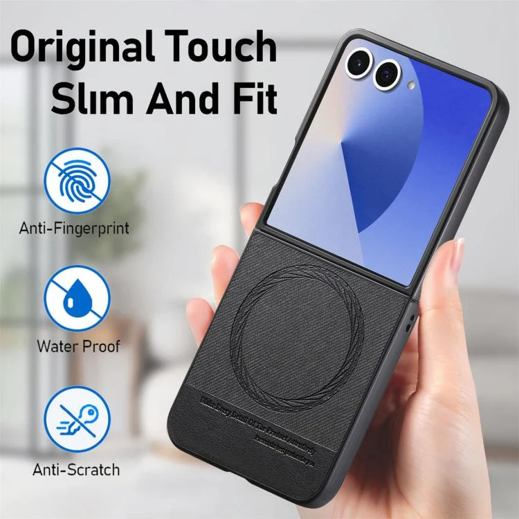 Twill Fabric Leather Skin Magnetic Back Phone Case, For Samsung Galaxy Z Flip7 5G, For Samsung Galaxy Z Flip6 / Flip7 FE