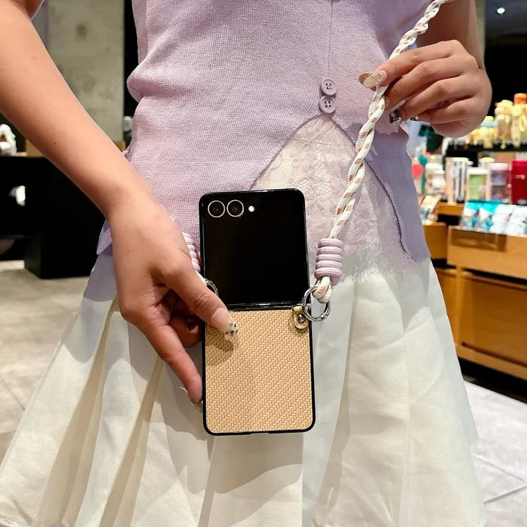 Woven Texture Phone Case With Colorful Lanyard, For Samsung Galaxy Z Flip7 5G