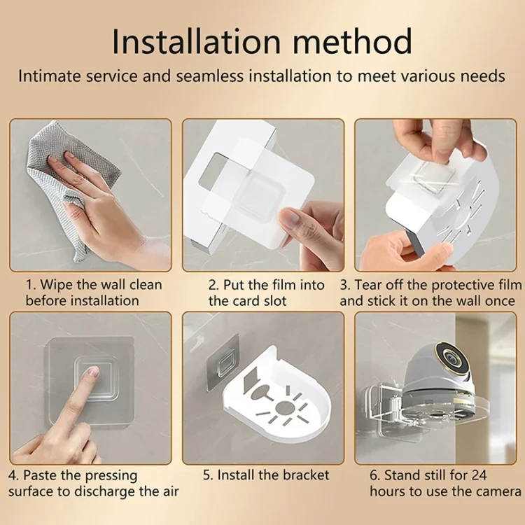 2. Wall-mounted camera bracket, non-marking hole-free, does not hurt the wall, smooth and solid, easy to install
