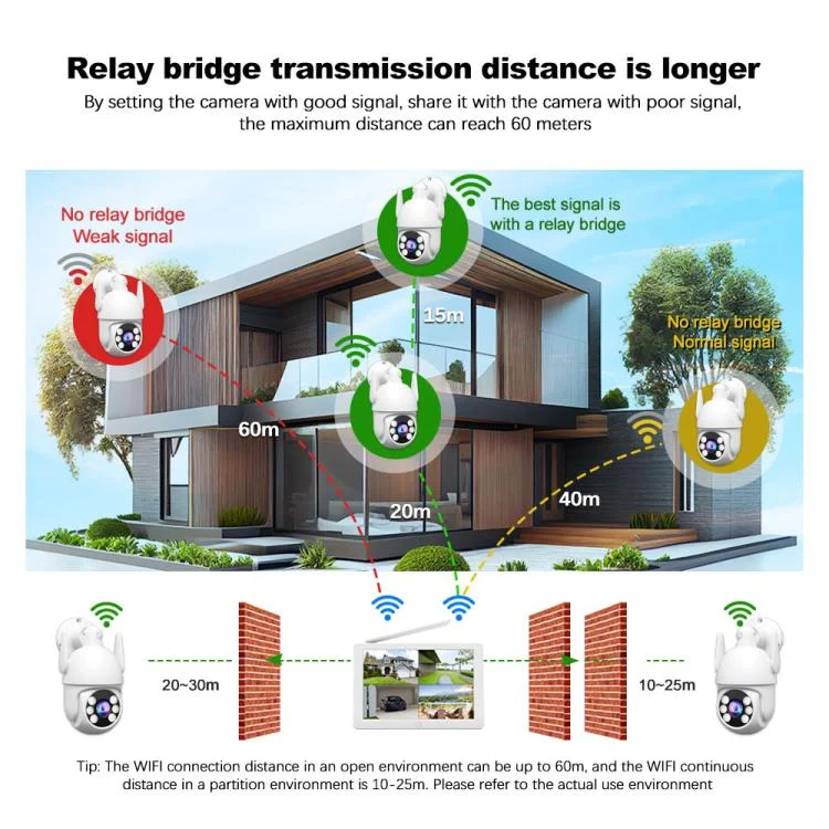 4. Supports wireless bridge mode with a WiFi range of up to 60 meters.