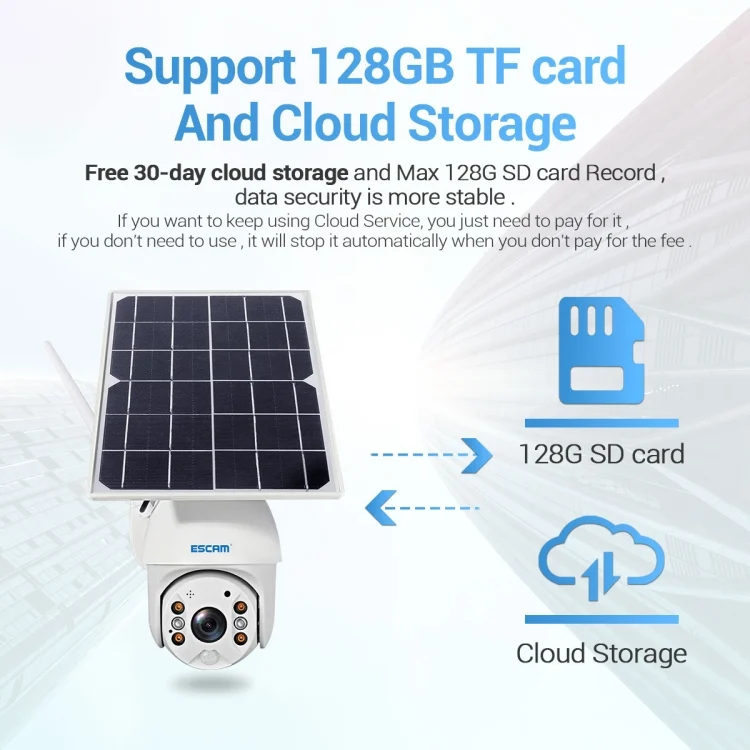 ESCAM QF480 EU Version HD 1080P IP66 Waterproof 4G Solar Panel PT IP Camera with Battery, Support Night Vision / Motion Detection / TF Card / Two Way Audio