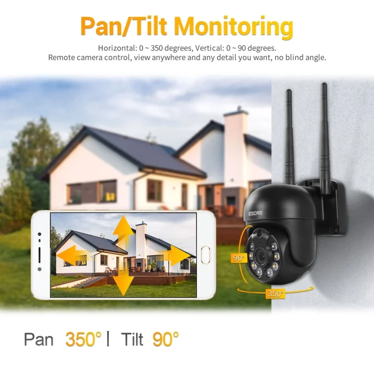 3. The body can be rotated 350 degrees/90 degrees, dual light sources, three kinds of intelligent full-color night vision