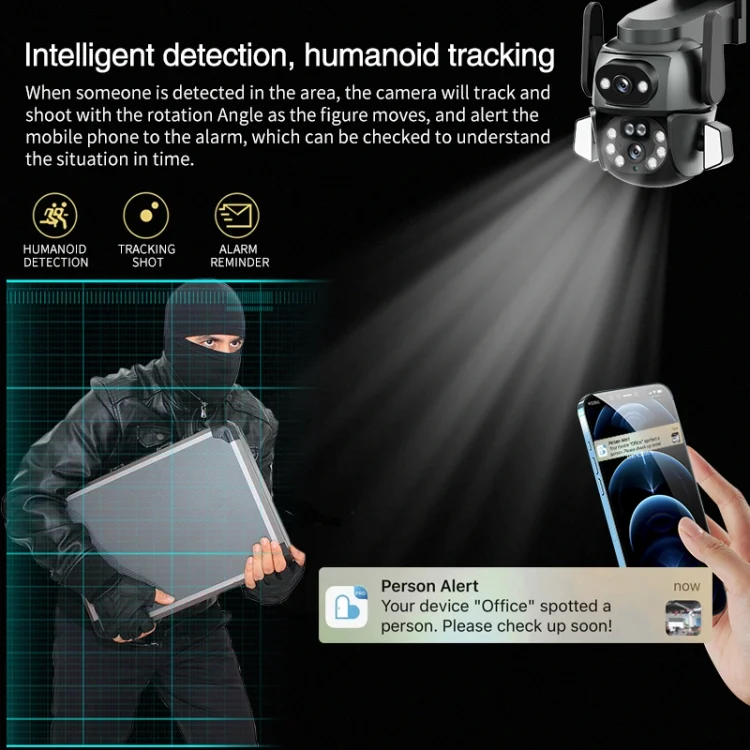 9. Alarm methods: speaker alarm, alarm recording, information push, image push, video push (requires cloud storage activation)