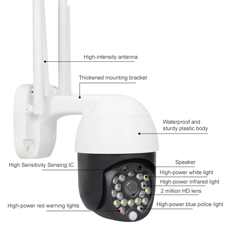 2. PTZ rotation, flexible monitoring, vertical 90 degrees, horizontal 180 degrees