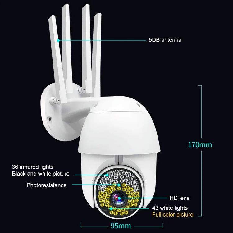2. PTZ rotation, flexible monitoring, vertical 90 degrees, horizontal 180 degrees