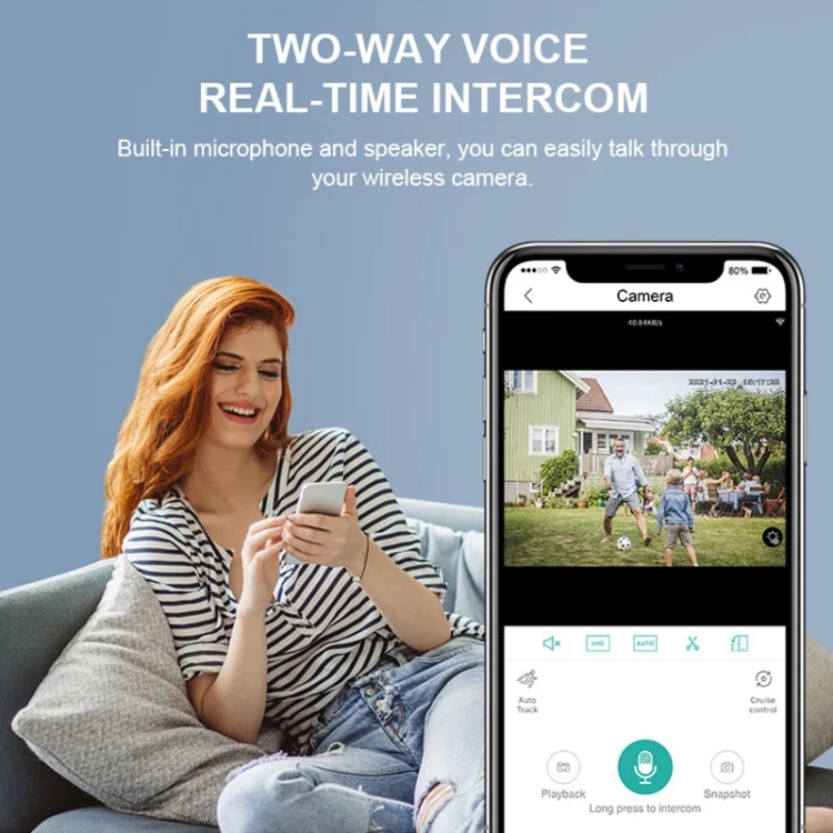 5. Support two channels of audio, built-in microphone and speaker, no matter how far away, you can easily talk through the battery camera