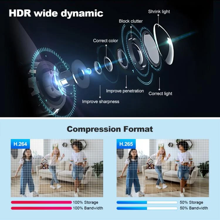 1. Pixels: 4 megapixels (2560×1440), H.265 compression format, high-definition and efficient.