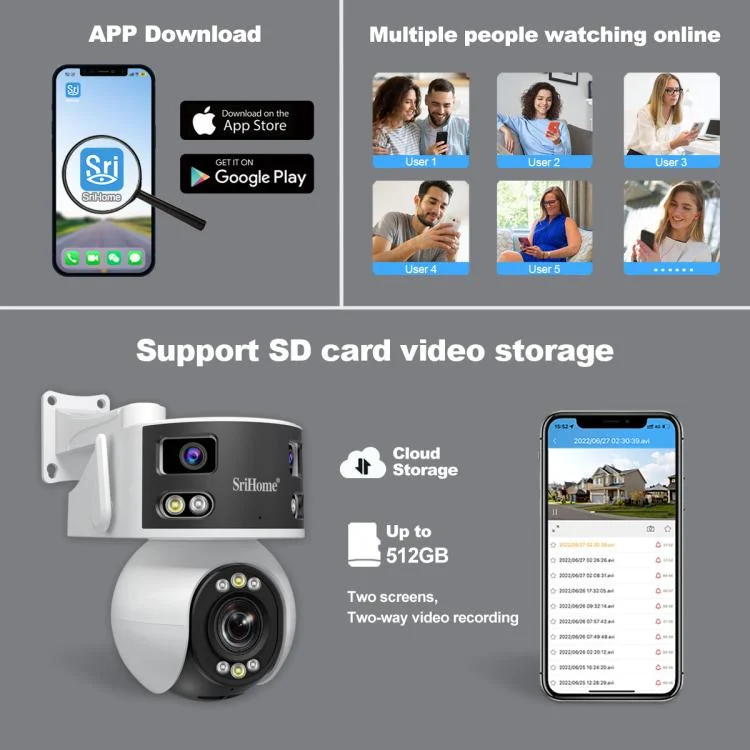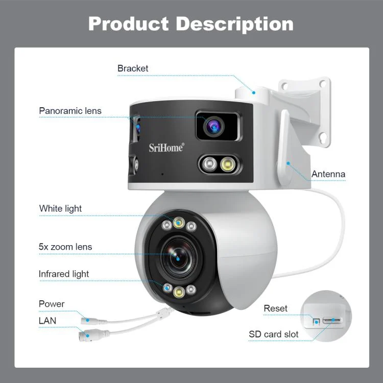 SriHome SH055 8MP HD Multi-lens 5X Optical Zoom Lens Panoramic PTZ Dome Camera