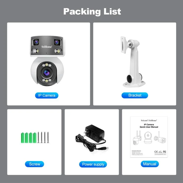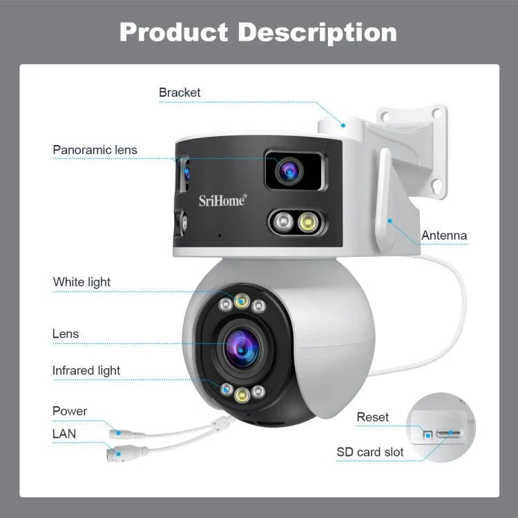 SriHome SH055B 8MP HD Multi-lens Super Wide Angle Panoramic PTZ Dome Camera