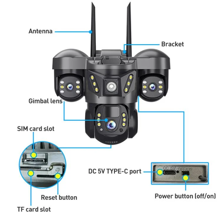 8. Storage: cloud storage or TF card (128GB max), support mobile phone recording and playback