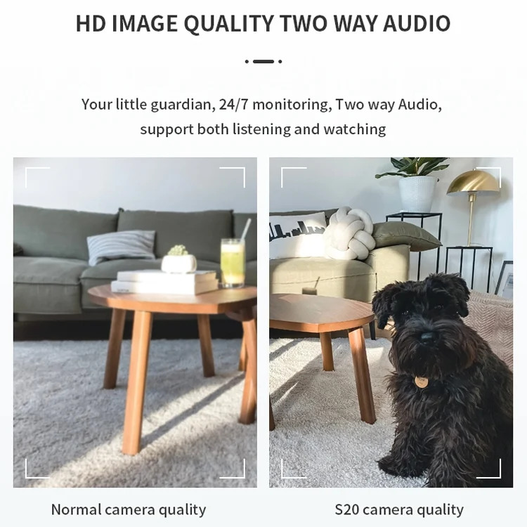 3. Two-Way Audio and App Viewing: With the built-in microphone and speaker, the mini S20 battery inside camera can be used remotely at any time.