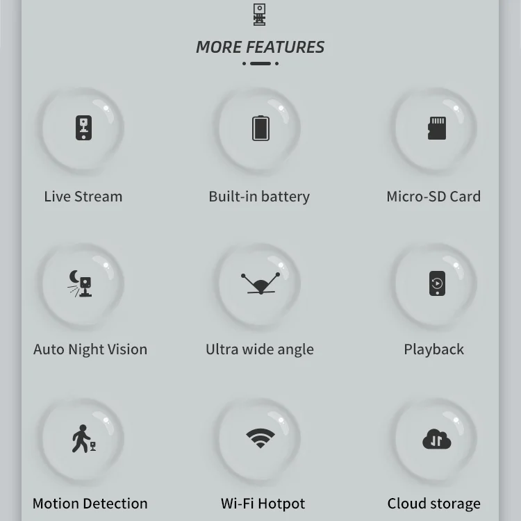 – Working mode: AP hotspot direct connection, IP remote access, motion detection and alarm