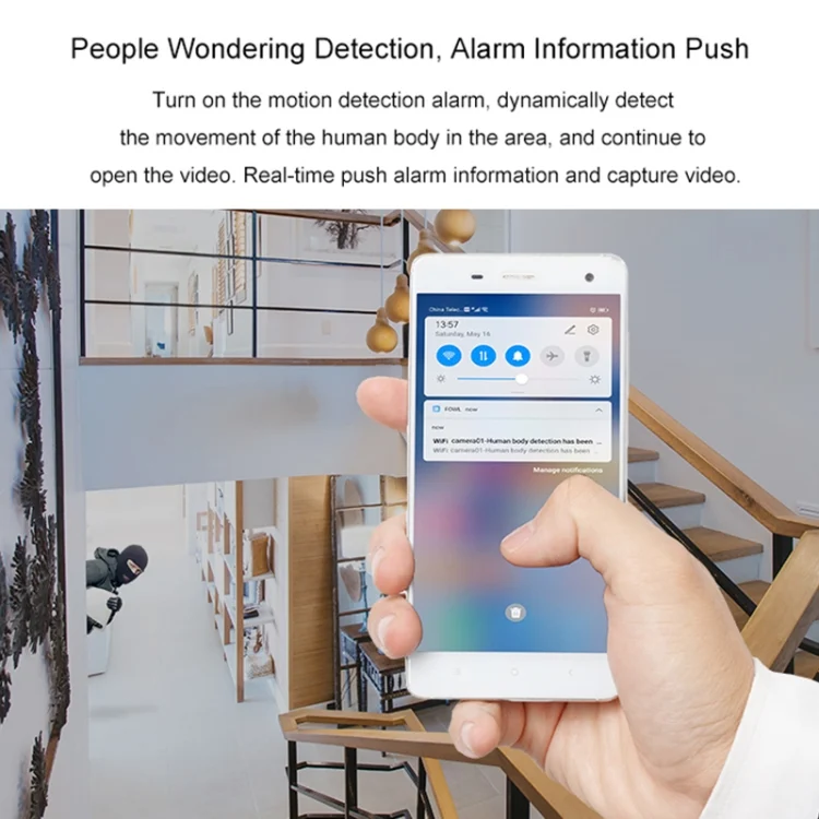 4. Remote two-way voice, enjoy free communication: two-way voice call, built-in speaker and high-sensitivity microphone, with a sound pickup range of up to 5 meters. You can talk to your family through your mobile phone at any time, and you can also shout remotely to shock criminals.