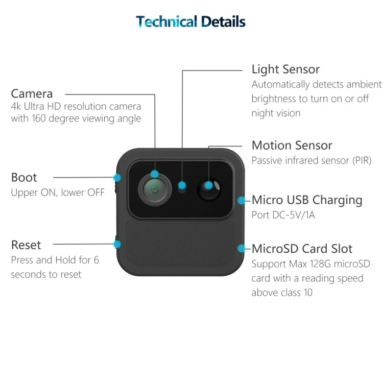 13. Local storage: TF card (up to 256GB, FAT32 format required, not included)